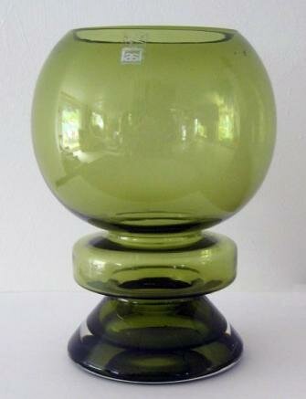 Maljakko-lyhty. Valmistettu kirkkaana ja oliivinvihreänä. Alkuperäisessä pakkauksessa ei ole ollut metallista kynttiläalustaa, mutta sen on voinut ostaa erikseen.