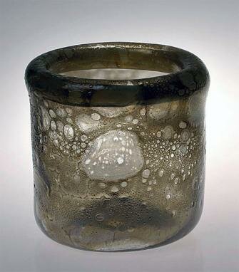Irisoiva ruskeansävyinen rakkolasi, taitettu reuna.