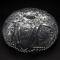 Puristelasia. Maljan keskellä kohokirjaimin "Riihimäki". Samalla kuviolla valmistettu erikokoisia maljoja ja lautasia.