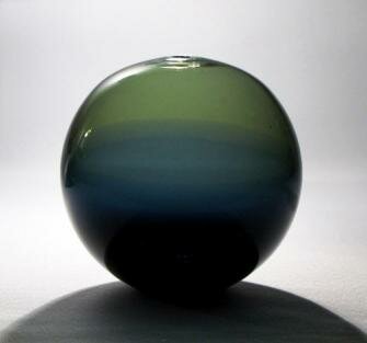 Vapaasti puhallettua lasia. Taidelasiesine.