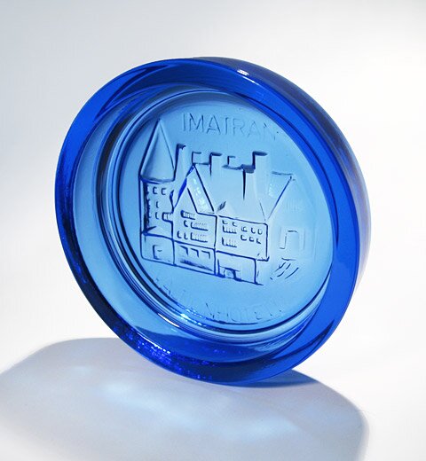 Manufactured in clear, blue and grey glass.