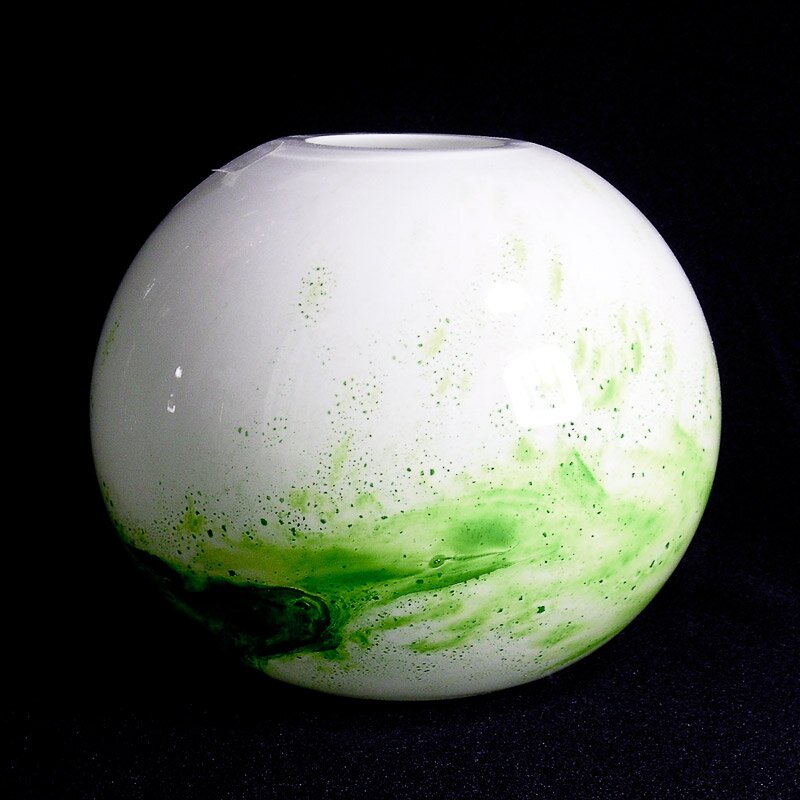 Turned mould blown white opal glass, blue green or green glasspowder.