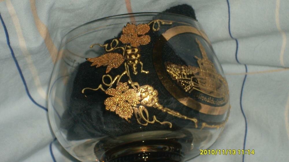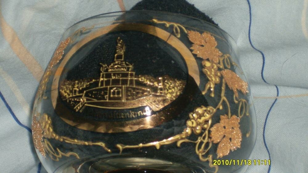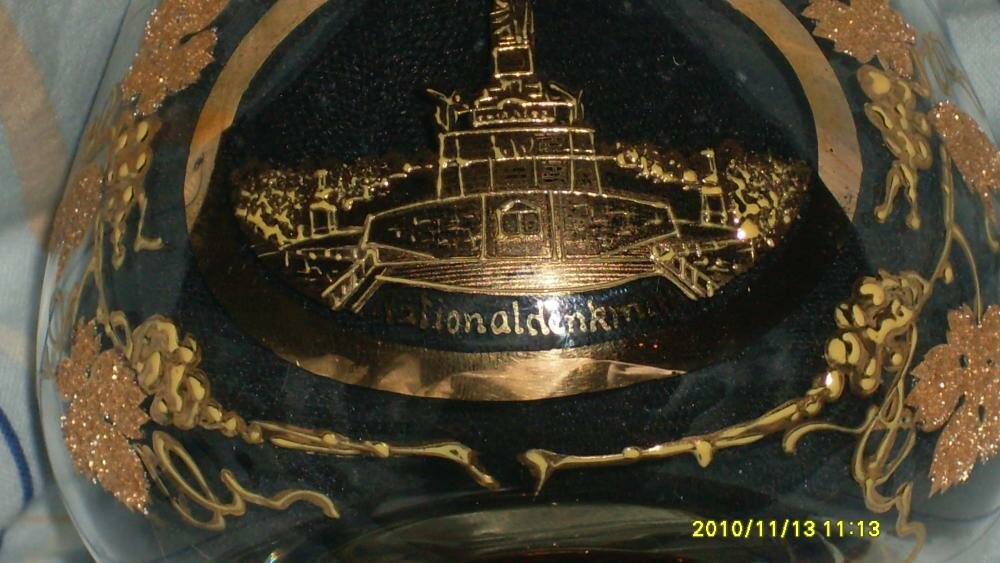 löysin samalaisen pikarin tuolta Uniikin laittamalta sivulta, sillä erolla, että siinä pikarissa oli todella lyhyt ja paksu jalka. "Andenkenrömer mit ansicht niederwalddenkmal" siinä oli tekstiä,muttei ole hajuakaan mitä tuo tarkoittaa.. :D samaa sarjaa eittämättä,mutta hinta puuttui tuostakin. :(