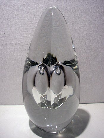 Lasi, tikkuilma, hiottu ja kiillotettu. Hyttityö.