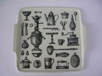 Arabia tarjotin retro mustavalkoinen kuvio